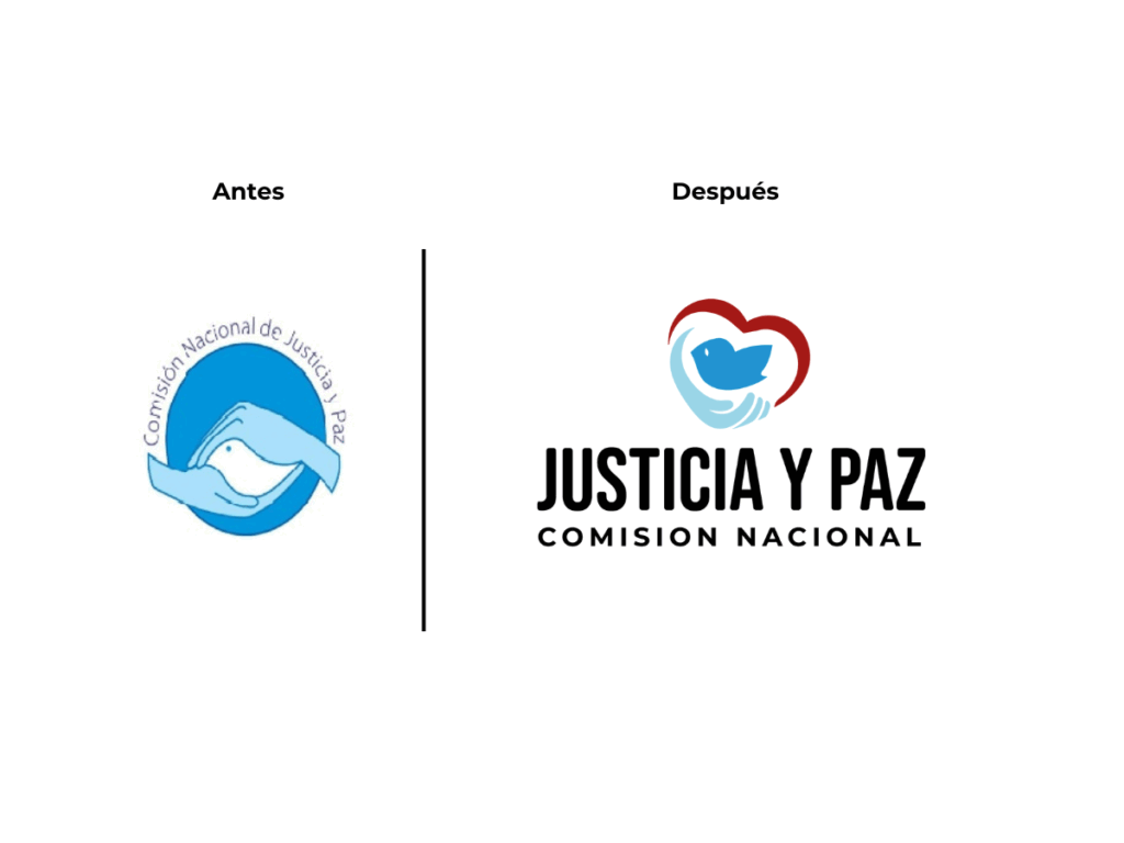 De este modo, también surgió la oportunidad de rediseñar el logo de la Comisión Nacional de Justicia y Paz, para alinear ambas identidades y fortalecer su comunicación conjunta. Sumando la paloma del Espíritu, la mano que sostiene y un corazón envolvente, en sintonía visual con CEPAS.